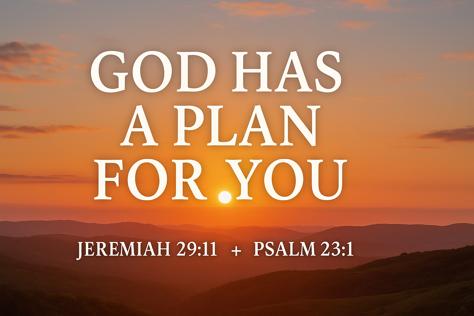 Psalm 23 offers a complementary promise: “The Lord is my shepherd; I shall not want. He makes me lie down in green pastures… He restores my soul.” (Ps 23:1–3). Like Jeremiah 29:11, it reassures us of God’s providential provision and restorative power.